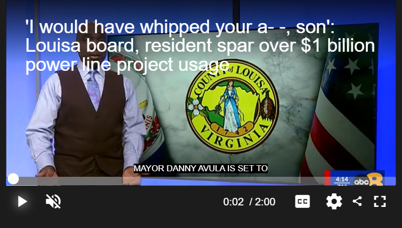 LOUISA COUNTY, Va. (WRIC) — A routine Louisa County board of supervisors meeting on Monday night escalated into a heated exchange and ended with the removal of a resident after he sparred with board members over a proposed $1 billion power line project planned for Central Virginia.